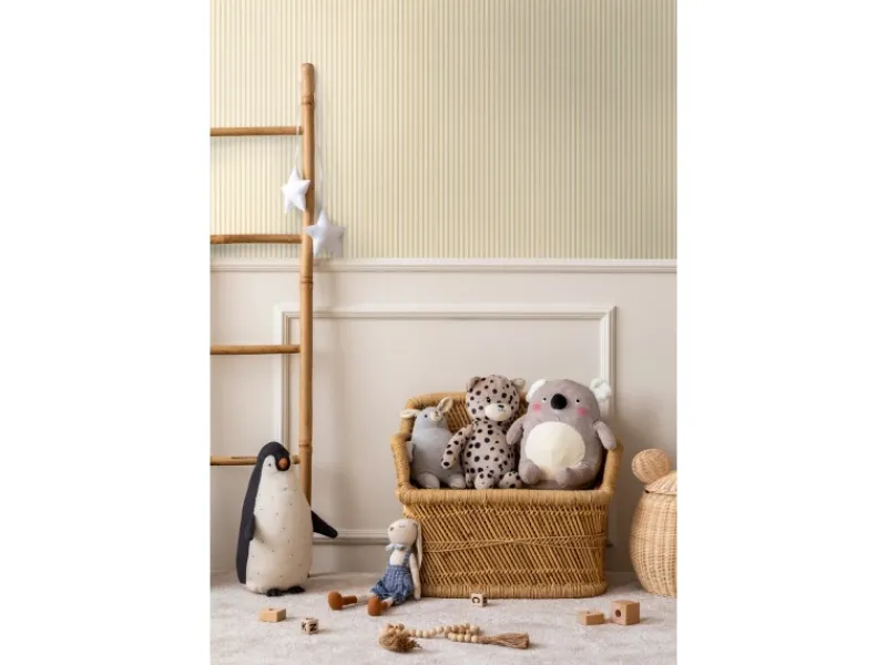 Diese trendige und fröhliche Tapete mit Streifenmuster in Gelb lässt jede Wand strahlen! Die Tapete kann mit vielen Farben kombiniert werden und das macht diese Tapete zu einem absoluten Must-Have. Maße, Rapport und Musterversatz Die Maße dieser Tapete sind 50 x 900 cm (Breite x Länge). Der Rapport ist 0 cm und die Tapete ist ansatzfrei. Das heißt, dass das Motiv sich alle 0 cm wiederholt und das Muster der einzelnen Tapetenbahnen beim Anbringen der Tapete nicht berücksichtigt werden muss.Tapezieren Das Anbringen dieser Vliestapete ist einfach und unkompliziert: nachdem der Vlies-Kleister direkt auf die Wand aufgebracht wurde, kann die Tapete angesetzt und anschließend glattgestrichen werden. Eventuelle Überstande können mit einem Cuttermesser entfernt werden. Beim Tapezieren wird kein Tapeziertisch benötigt und die Tapete ist auch nach Jahren restlos trocken abziehbar. Für das beste Tapezierergebnis empfiehlt Sanders & Sanders den professionellen Wallpro PRO-301 Tapetenkleister. Vorbereitungstipp: Verhindere Probleme mit der Haftung deines Tapeten, indem du vorher testest, ob deine Wandoberfläche stark saugend ist. Nimm dazu einen feuchten Schwamm und befeuchte einen kleinen Teil der Wand. Wenn der feuchte Bereich innerhalb weniger Sekunden verschwindet, ist die Wand sehr saugfähig. In diesem Fall empfehlen wir, ein Grundiermittel zu verwenden, um die Saugfähigkeit zu verringern. Sanders & Sanders empfiehlt hierfür die WALL PRO-401 Tapetenprimer.Sofort startklar! Am einfachsten ist es, direkt auch der benötigte Tapetenkleister und ein Wallpro PRO-933 Tapezierset zu bestellen. Dieses Tapezierset enthält alle Tapezierwerkzeuge, die beim Tapezieren von Vliestapeten benötigt werden. Diese Artikel können über das Suchfenster auf der Amazon Seite schnell gefunden und bestellt werden. So wird das Tapezieren zum Kinderspiel!