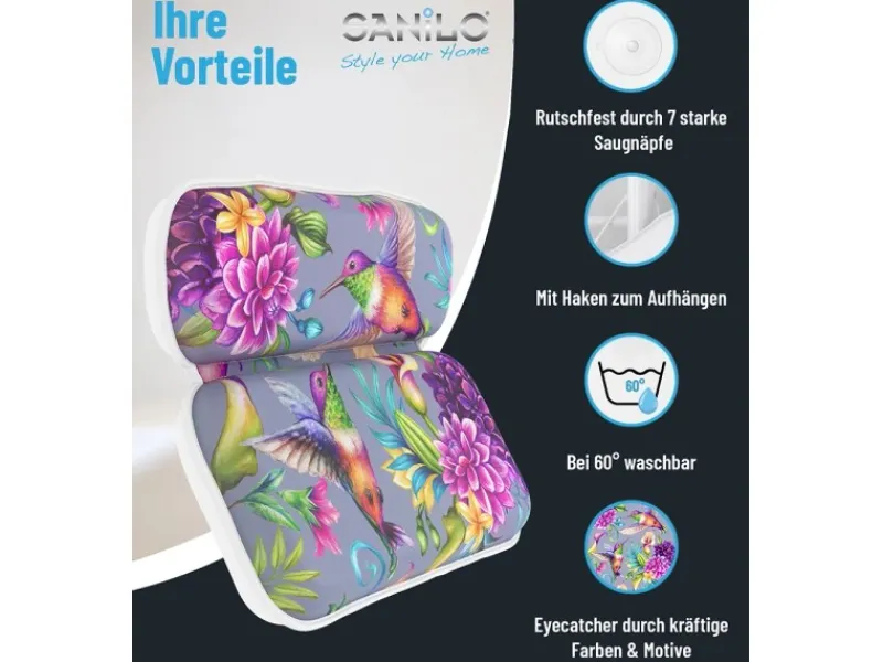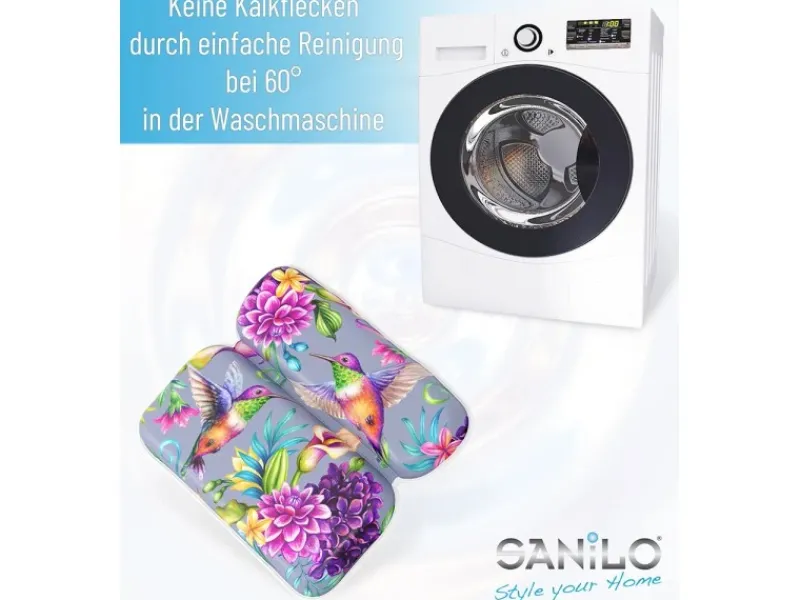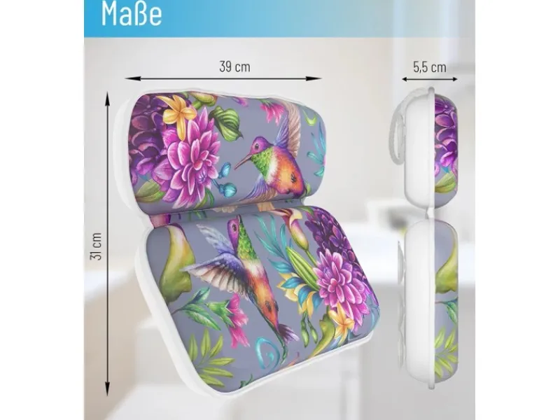 Die kräftigen Farben und das schöne Motiv auf dem SANILO Nackenkissen ist ein echter Eyecatcher im Badezimmer.