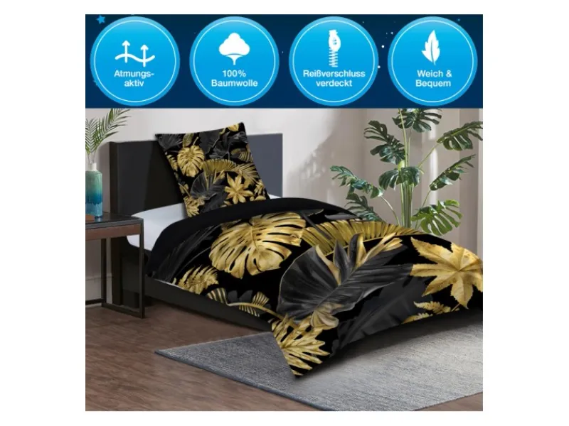 Durch die atmungsaktive und hautfreundliche Baumwolle schläft es sich besonders gut. Die feuchtigkeitsabsorbierende und temperaturausgleichende Bettwäsche sorgt für ein ideales Schlafgefühl.