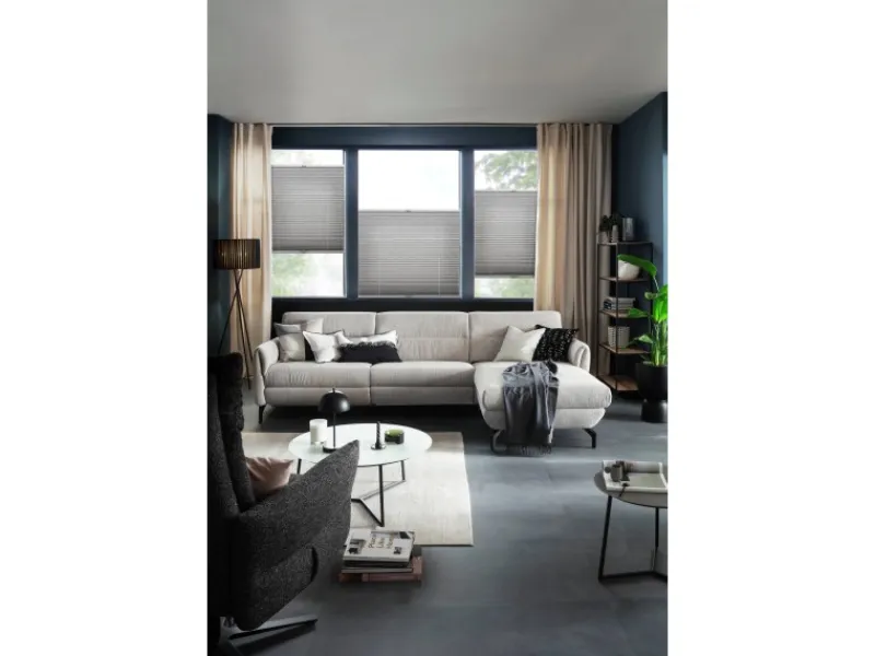 Das Plissee Milla lässt viel Tageslicht durch und ist damit die erste Wahl im Wohnzimmer, wo wir große Fensterflächen und viel Licht lieben, aber keine fremden Blicke in unsere Privatsphäre wünschen. Das Polyestergewebe von Milla bekommt durch seine Crush-Optik Lebendigkeit.