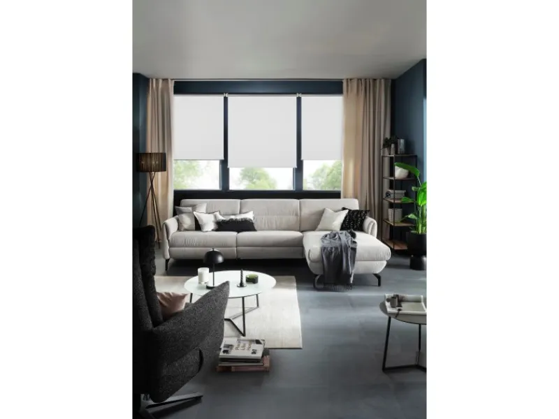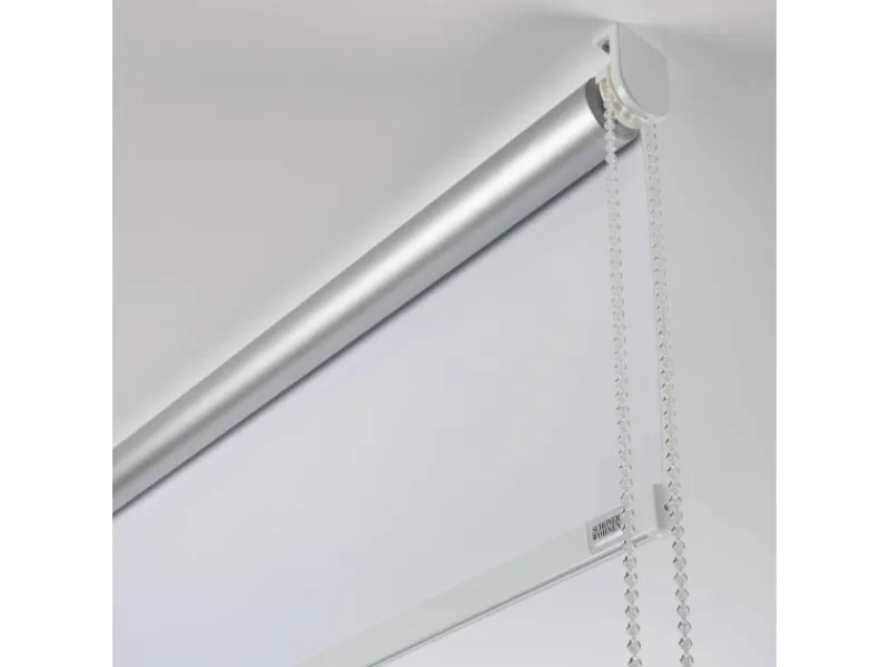 Die Bedienung erfolgt mühelos mithilfe einer transparenten Kette, die wahlweise rechts oder links zusammen mit dem Seitenzuggetriebe montiert werden kann. Die Rollotechnik und die Abschlussleiste in Weiß sorgen für eine edle Optik. Die flexible Montagemöglichkeit ermöglicht es, das Rollo an der Wand, Decke oder in der Fensternische zu befestigen. Alternativ können Sie es mit verstellbaren Klemmträgern am Fensterflügel befestigen. Auch die praktische Klebe-Montage ist möglich.