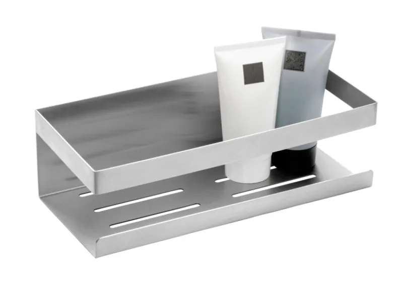 Hergestellt aus rostfreiem Edelstahl eignet sich die Ablage ideal für den Nassbereich – hier finden Duschgels, Shampoo und Co. einen sicheren Platz zur Aufbewahrung. Durch die integrierten Schlitze im Boden kann Duschwasser einfach abfließen.