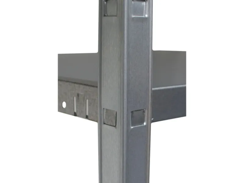 Vorhandene Verstellraster sorgen für ein beliebiges und einfaches Einstecken der Fachböden in die gewünschte Ebene. Das Regal ist modular erweiterbar mittels eines zusätzlichen Anbauregals.