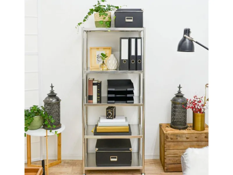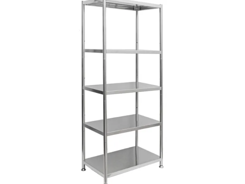 Das hochwertige Edelstahlregal mit 5 großen Ablagen schafft jede Menge extra Stauraum.