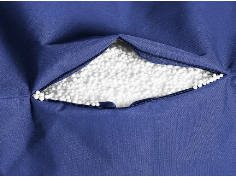 Die Füllung des Sessels besteht aus EPS-Perlen. Die EPS-Perlen passen sich dem Körper beim Sitzen an und sorgen für die ideale Druckverteilung, bei Entlastung gehen diese wieder in ihre ursprüngliche Form zurück. Nur langsam nützt sich diese Füllung ab und bietet zudem eine hohe Robustheit. Wenn die Füllung sich doch abgenutzt haben sollte, können diese nachgefüllt werden, damit der Sitzsack seine frühere Form wieder erhält.