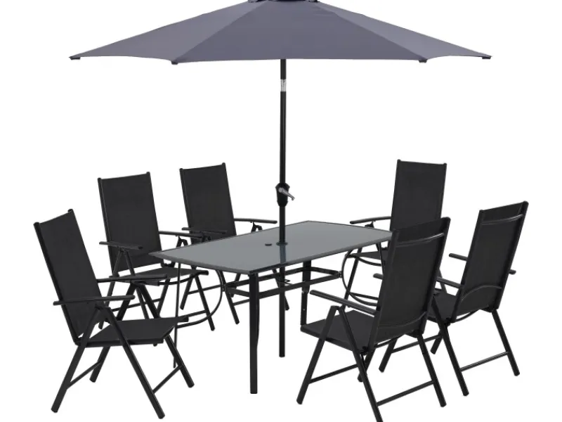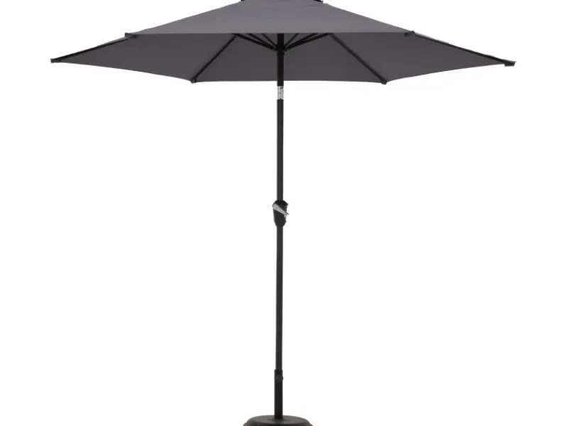 Stilvolles Design mit grauer Bespannung und inklusive Sonnenschirm