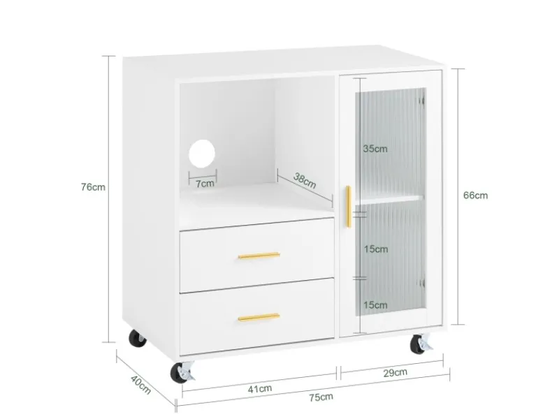 Das geräumige Fach eignet sich perfekt für Mikrowelle oder Drucker und verfügt über Kabeldurchlässe.