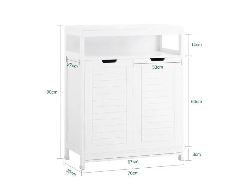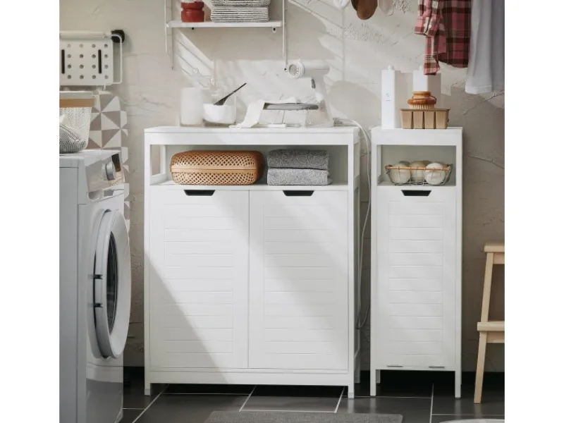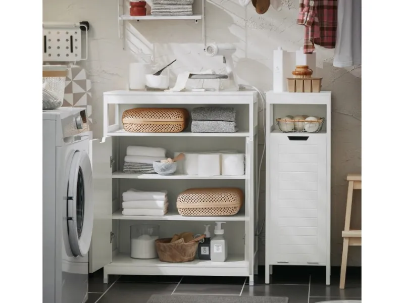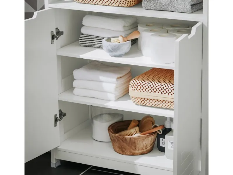 Das Regal kann auch als 7-teiliges Set erworben werden: Waschbeckenunterschrank (FRG128-W), Spiegel (FRG129-W) Badkommode (FRG127-W), Hochschrank (FRG126-W & BZR123-W), Badkommode (BZR121-W), Wäscheschrank (BZR122-W).