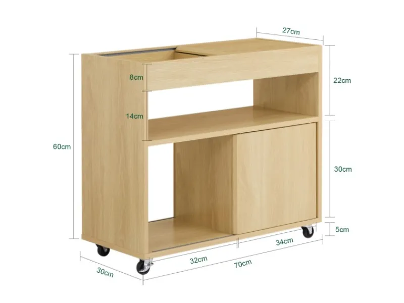 Insgesamt gibt es fünf Fächer, die zur Aufbewahrung von Dokumenten, Büchern und anderem Büromaterial in verschiedenen Größen dienen.