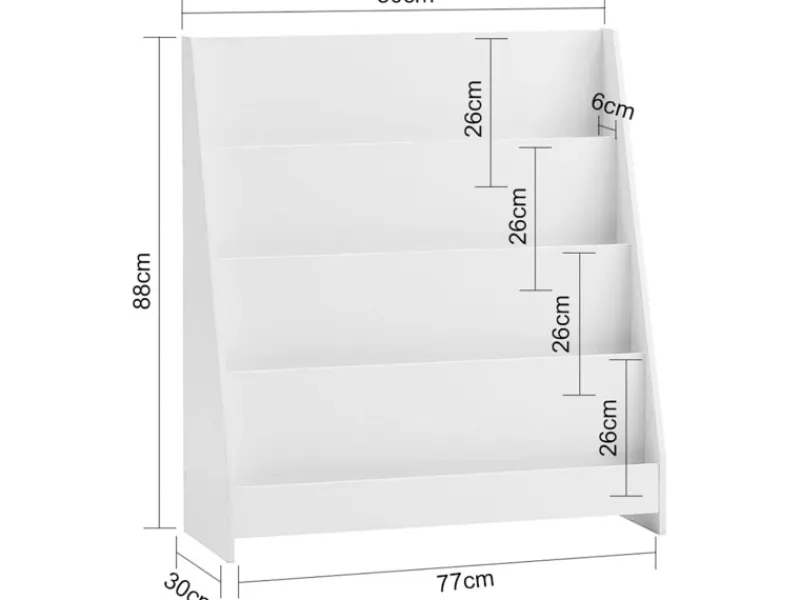 Sie können dieses Regal auch verwenden, um es neben das Sofa, Tagesbett oder ins Schlafzimmer stellen und Ihre Lieblingsmagazine stilvoll an einem gut zugänglichen Ort aufbewahren! Das Kinder-Bücherregal passt zu nahezu jeder Inneneinrichtung.