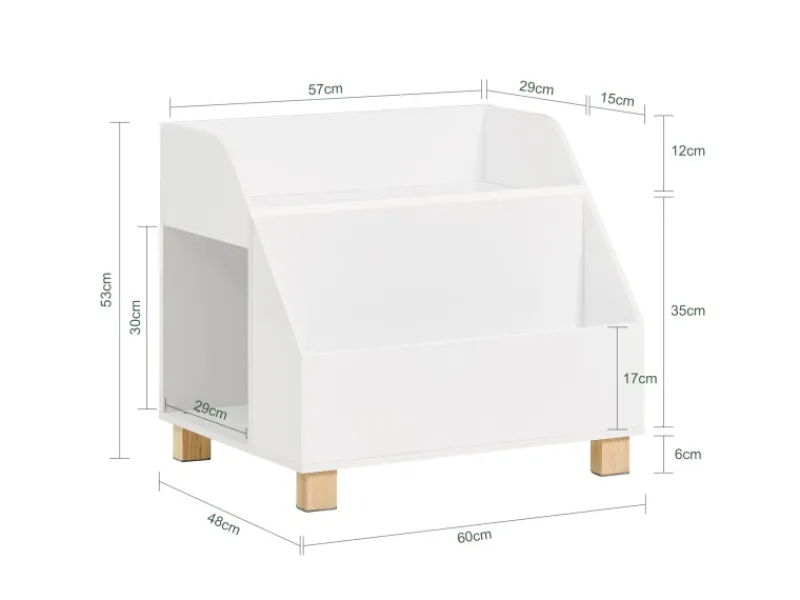 Mit 2 Fächern zum Ordnen und Sammeln von Kinder Büchern, Spielsachen usw. In das Fach an der Seite können Gegenstände, die nicht häufig gebraucht werden, abgelegt werden.