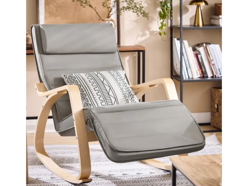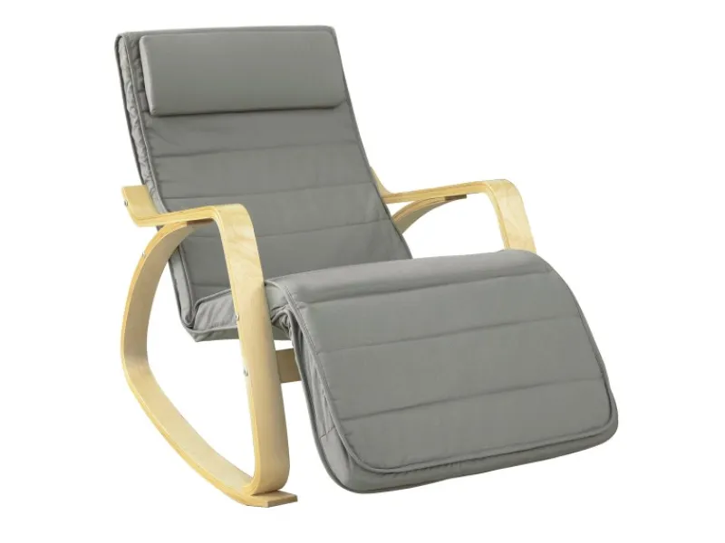 SoBuy Schaukelstuhl Schaukelsessel mit Verstellbarer Fußstütze FST16-DG