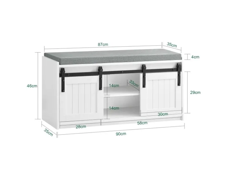 Diese Schuhbank verfügt über 6 Fächern hinter 2 Türen.