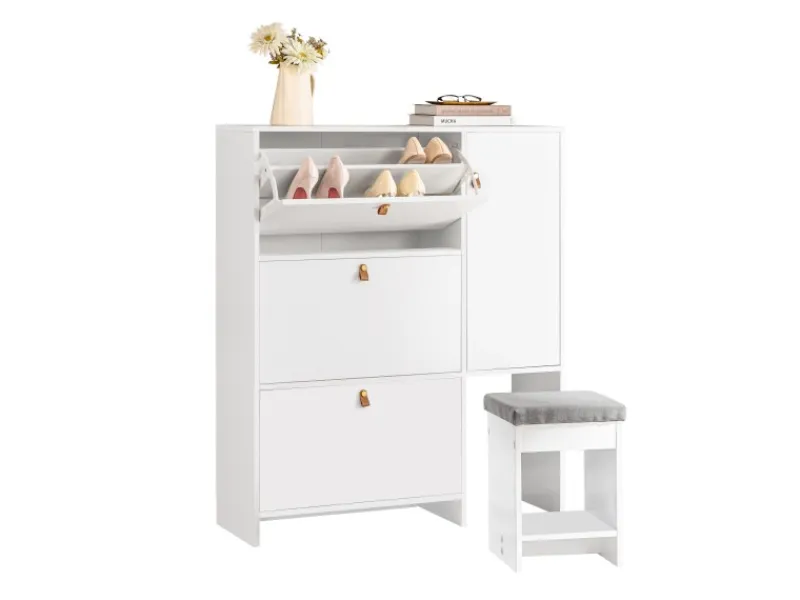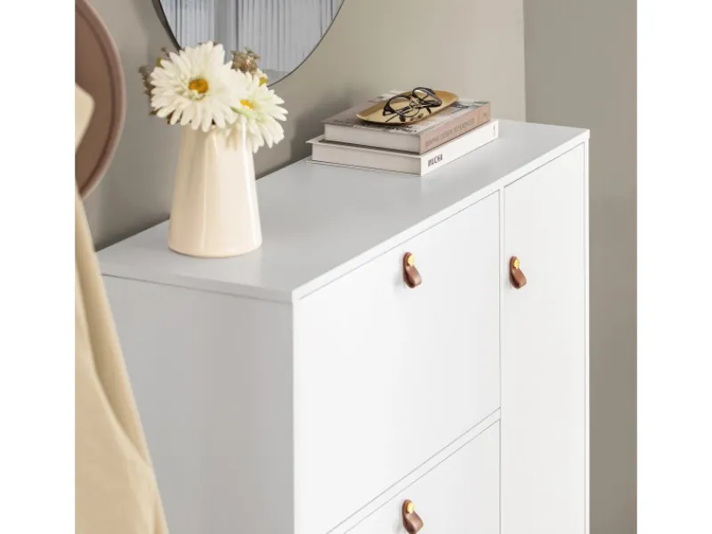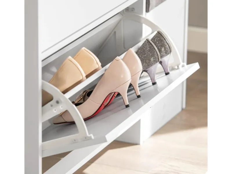 Durch 3 Kippfächer mit 6 Ablageflächen im Inneren, können Sie Ihre Schuhe ordentlich verstauen.