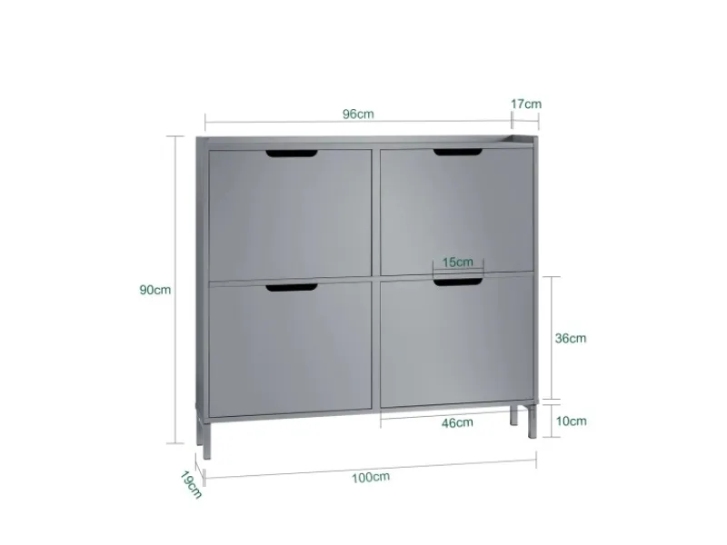 Mit den 4 Klappen können Sie eine große Auswahl an Schuhen in verschiedenen Größen und Ausführungen aufbewahren.