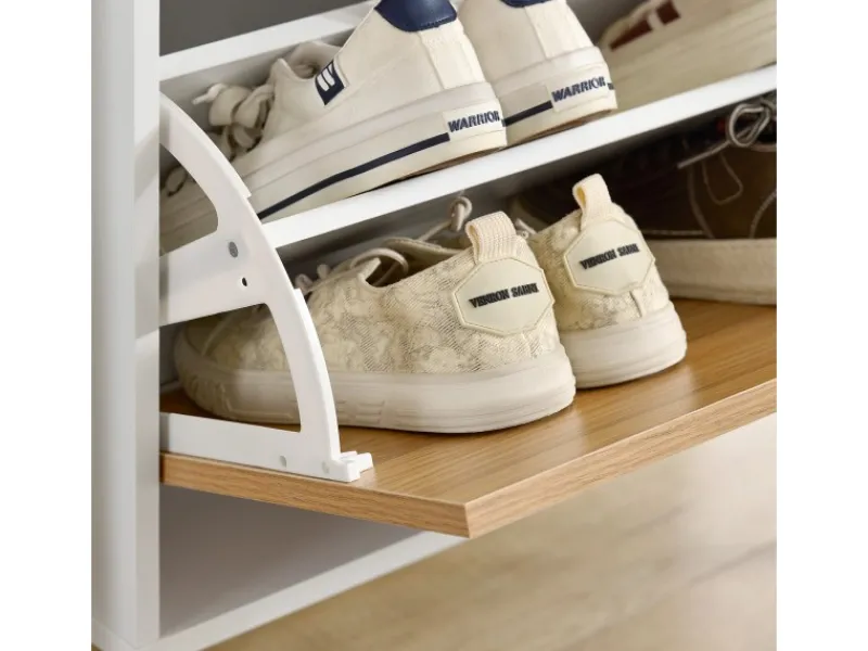 Zwei Fächer hinter der Tür bieten Platz für größere Gegenstände wie Schuhkartons.