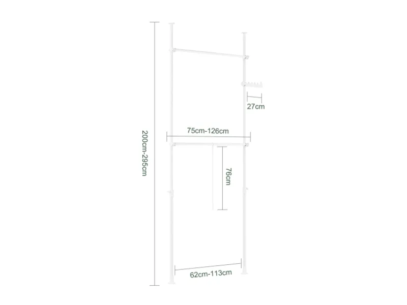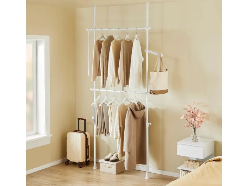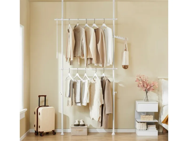 Zwei stufenlos verstellbare Kleiderstangen ermöglichen Übersicht, Ordnung und bieten viel Platz für Kleider, Mäntel, Oberteile und Hosen.
