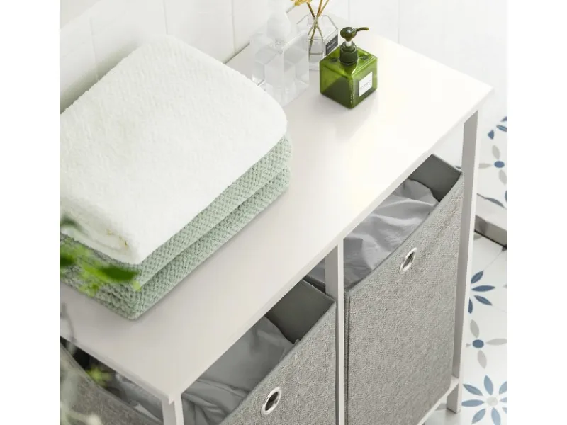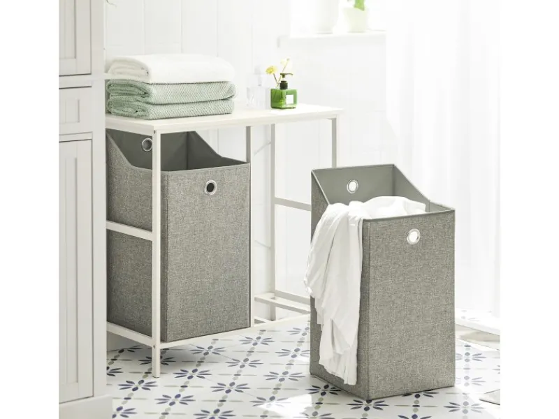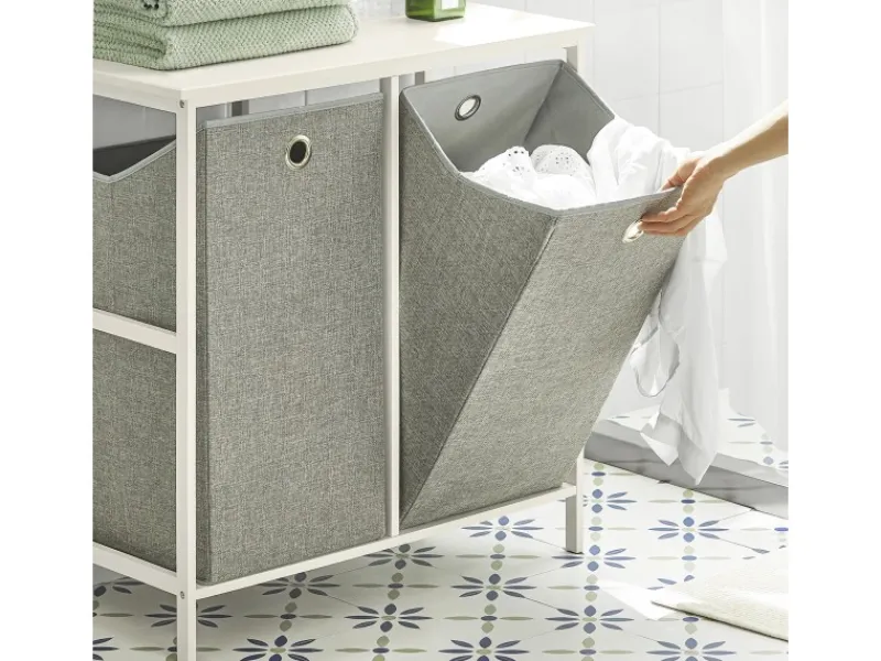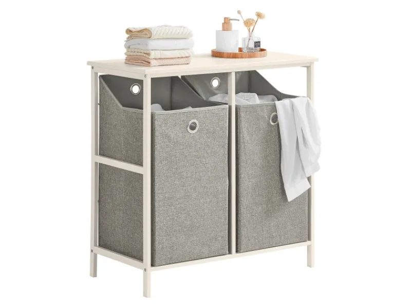 Zwei abnehmbare Wäschesäcke bieten viel Platz für Schmutzwäsche.