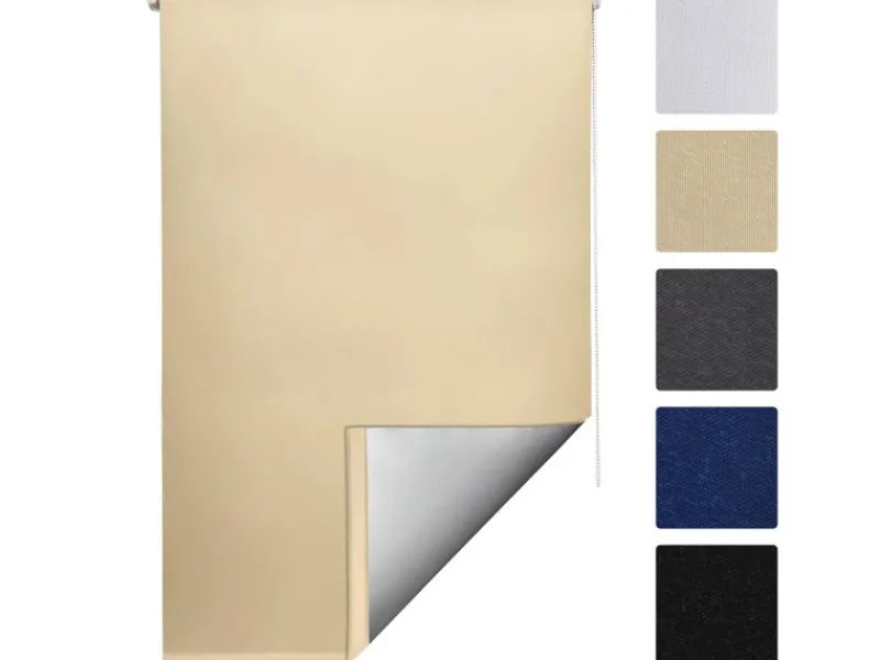 Mit den praktischen und leicht anzubringenden Rollos schaffen Sie blitzschnell und ohne Bohren eine behagliche Wohnatmosphäre in Ihren Räumen. Sol Royal SolReflect T42 Thermorollo VerdunkelungsrolloMit den praktischen und leicht anzubringenden Rollos schaffen Sie blitzschnell und ohne Bohren eine behagliche Wohnatmosphäre in Ihren Räumen.Montage mit oder ohne BohrenDas Sol Royal Thermorollo SolReflect T42 kann mit Bohren, aber auch mittels Klemmfix ohne Bohren an Ihrem Fenster, Ihrer Balkontür oder Terrassentür angebracht werden. Es ist lichtundurchlässig und ideal als Blickschutz, Sonnenschutzrollo oder als Hitzeschutz Rollo für Fenster und Tür.Thermobeschichtung:Das Verdunkelungsrollo hat eine isolierende Thermobeschichtung in Silber und ist zu 100% verdunkelnd. Im Winter blockt das Rollo die kalte Luft von draußen und spart so Heizkosten. Im Sommer wird der Raum durch die Thermobeschichtung abgekühlt.KlemmfixDas Thermorollo lässt sich auch ohne Bohren mittels der im Lieferumfang enthaltenen Klemmträger einfach und schnell anbringen. Sie möchten es lieber an die Wand oder Decke bohren? Das ist durch das mitgelieferte Material ebenfalls kein Problem.Die in der Beschreibung angegebenen Maße entsprechen der Gesamtbreite des Rollos. Die Stoffbreite ist ca. 4 cm schmaler.Mit den praktischen und leicht anzubringenden Rollos, schaffen Sie blitzschnell und ohne Bohren eine behagliche Wohnatmosphäre in Ihren Räumen.Produktdetails:Material: 100% Polyester Geeignet für Falzstärken bis 16 mm Verdunkelungsrollo mit Thermobeschichtung – isolierend und zu 100% verdunkelnd Klemmfix – einfache und schnelle Montage mit Klemmträgern, ganz ohne Bohren und Schrauben Sonnenlicht-Reflexion im Sommer – Abkühlung der Wohnräume Abwischbarer, UV- und feuchtigkeitsbeständiger Stoff Kettenzugmontage links und rechts möglich Kettenzug mit Kindersicherung Bedienung über EndlosketteWarnhinweis:Bitte beachten Sie, dass Kinder sich mit Schnüren und Ketten strangulieren können. Bitte installieren Sie daher das Rollo nicht in der Nähe von Kinderbetten und achten Sie stets auf die Sicherheit Ihres Kindes.