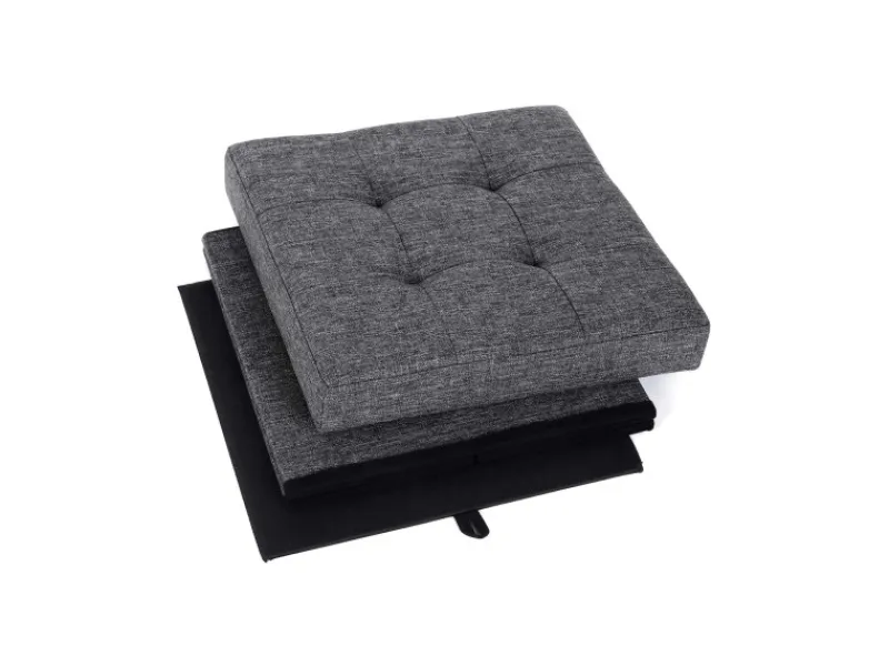Der untere Teil des Sitzwürfels ist zusammenklappbar und lässt sich bei Nichtgebrauch platzsparend unter dem Bett oder im Schrank verstauen. Der Sitzwürfel ist schnell wieder einsatzbereit, aufklappen und Bodenplatte einsetzen. Das Sitzpolster dieses Sitzwürfels mit Stauraum besteht aus 25 mm dickem, hochdichtem Schaumstoff und ist hochelastisch und formstabil , für maximalen Sitzkomfort.