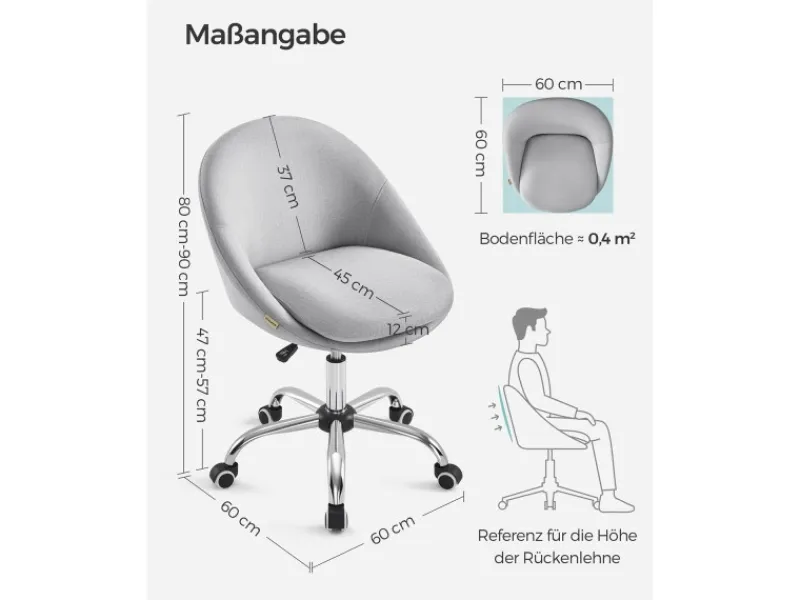 Bei Nichtgebrauch können Sie den Schreibtischstuhl unter den Schreibtisch schieben, um Platz zu sparen. Doppeltes gut gepolstertes Kissen (7 cm dick oben), geschwungen geformte, große Sitzfläche entlasten den Druck auf Ihre Hüften. Der Bezug aus Baumwoll-Leinen-Mischgewebe ist atmungsaktiv.