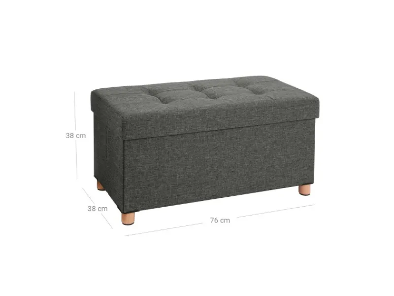 Jedes Bein ist mit einem rutschfesten Fußpad ausgestattet, was zusätzliche Stabilität bietet und Ihren Boden vor Kratzern schützt. Diese klappbare Sitztruhe dient als Aufbewahrungsbox, Fußstütze und sogar als Couchtisch. Er passt perfekt ins Wohnzimmer, Schlafzimmer, Eingangsbereich oder Ankleidezimmer, um verschiedenen Bedürfnissen gerecht zu werden.
