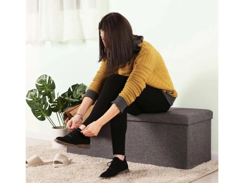 Diese Sitzbank dient nicht nur als Aufbewahrungsbox und Fußbank, sondern auch als Couchtisch Er lässt sich leicht in jede beliebige Ecke stellen, sei es im Wohnzimmer, am Fußende des Bettes, im Flur oder unter Fenstern.
