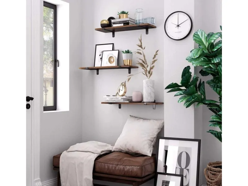 Diese Schweberegale aus MDF der Klasse E1 verfügen über starre Halterungen, die eine maximale statische Belastbarkeit von jeweils 15 kg erreichen. Mit nur 3 Stück pro Schweberegal können Sie sie direkt an der Wand aufhängen, bevor Sie es bemerken. Ziehen Sie einfach die 4 Schrauben fest, um die beiden Halterungen am Regalbrett zu befestigen und fertig.