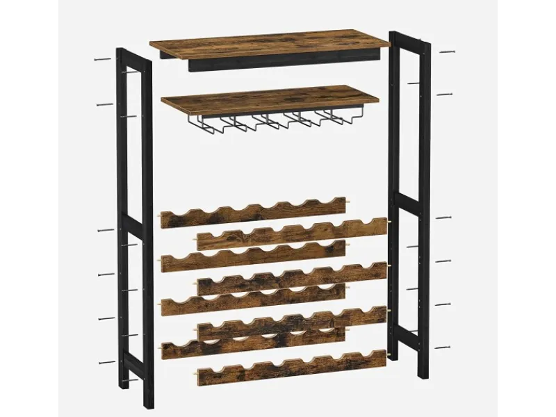 Dank gekennzeichneter Teile und klarer Anleitung ist die Montage dieses Weinregals ein Kinderspiel. So haben Sie mehr Zeit, sich auf die Weinparty vorzubereiten! Ein platzsparendes Weinregal für 24 Weinflaschen mit Glashaltern und einer Tischplatte. Dazu ein Kippschutz, eine klare Anleitung für eine einfache Montage und die Möglichkeit, Ihre Weinsammlung stilvoll zu präsentieren.