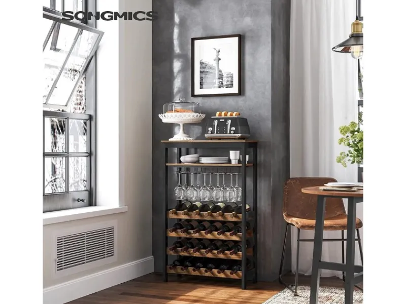 Dank der Einkerbungen an den horizontalen Leisten liegen die Flaschen immer stabil. Die Kombination aus schwarzem Bambusgestell und brauner Oberfläche verleiht diesem Weinregal einen einzigartigen Stil. Das formschöne Weinregal passt sich flexibel an jeden Raum an. Nutzen Sie es im Keller, im Esszimmer oder in der Küche.