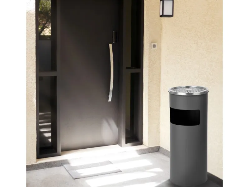 Der Outdoor Standascher mit integriertem Papierkorb umfasst insgesamt 30 Liter und überzeugt nicht nur mit seinem modernen und eleganten Look, sondern auch durch Funktionalität.Die edle Optik des Abfalleimers sorgt dafür, dass er sowohl im Innen- als auch Außenbereich eingesetzt werden kann. Somit ist der Standaschenbecher für Garten, Terrasse, Raucherinseln oder für Eingangsbereiche von Firmengebäuden ideal geeignet. Durch das platzsparende und schlanke Design findet er auch auf kleinen Balkonen seinen Platz.
