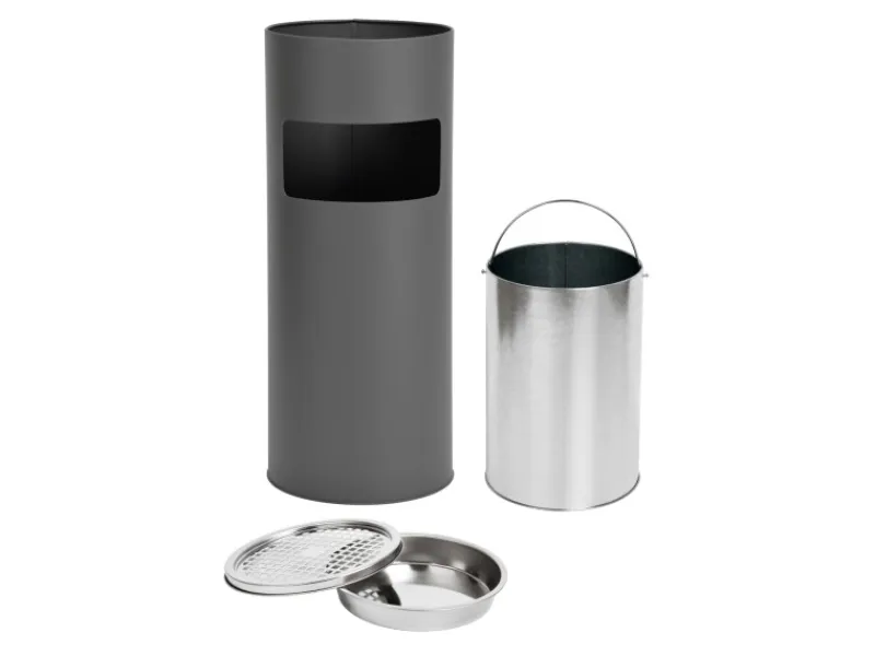 Sowohl die Zigarettenschale mit Gitter als auch der Abfallinneneimer sind herausnehmbar, sodass diese einfach & hygienisch zu entleeren sind und im Handumdrehen gereinigt werden können.Brandsicher und wetterfest verarbeitet, kann der Papierkorb mit integriertem Aschenbecher sicher genutzt werden.