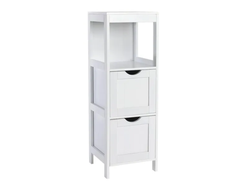 Mit zwei geräumigen Schubladen und einem offenen Ablagefach bietet es vielseitigen Stauraum für all Ihre Badutensilien. In den Schubladen lassen sich Handtücher, Kosmetik oder Pflegeprodukte zuverlässig verstauen, während das offene Fach Platz für häufig genutzte Gegenstände oder dekorative Elemente bietet. Das robuste und feuchtigkeitsbeständige Material sorgt für Langlebigkeit und ist ideal für den Einsatz in feuchten Räumen.
