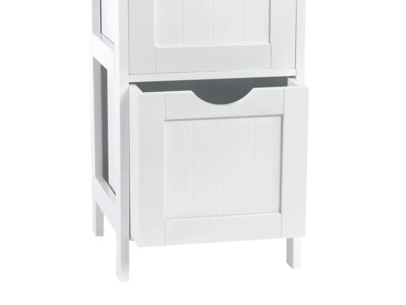 Besteht aus MDF-Platten mit weißer Lackierung – Gesamtmaße: ca. 30x30x89 cm (BxTxH)