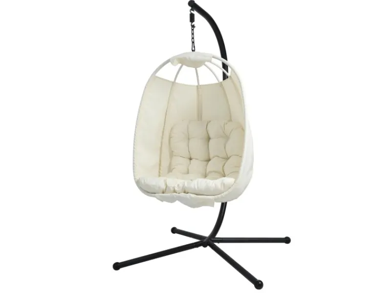 Das Gestell aus pulverbeschichtetem Stahl und der Ständer in Kreuzform verleihen dem Outdoorsessel die nötige Standfestigkeit. Die Bezüge aus pflegeleichtem Polyester (180 g/m²) lässt sich einfach reinigen, sodass man lange Freude an dem Sessel hat.Lehnen Sie sich zurück und genießen Sie entspannte Stunden im SVITA NELLY Hängesessel!