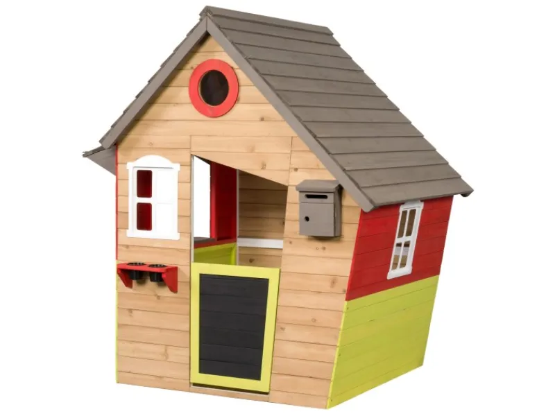 Das Swing King Spielhaus Fairytale ist aus gefärbtem FSC-Holz gefertigt. Das Spielhaus ist für Kinder im Alter von 3-8 Jahren geeignet. Das Spielhaus hat ein märchenhaftes Aussehen und enthält einen Briefkasten und Blumentöpfe. Die Außenmaße des Spielhauses sind 140 cm x 106 cm x 144 cm und die Innenmaße sind 104 cm x 94 cm x 144 cm.