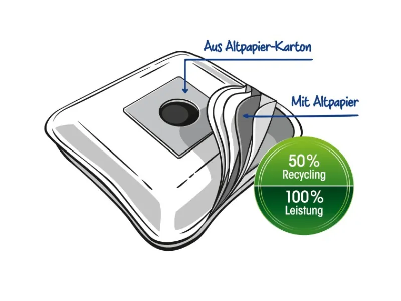 Ressourcenschonend durch den Einsatz von 50% Recyclingmaterial bei unvermindert hoher Leistung!