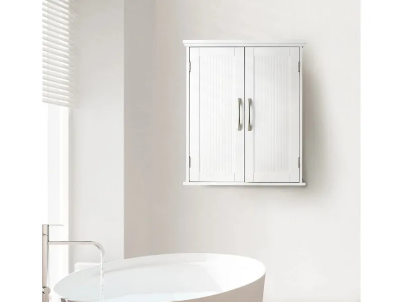 Stil Klassisches weißes Finish mit zwei flachen perlenbesetzten Shaker-Türen und