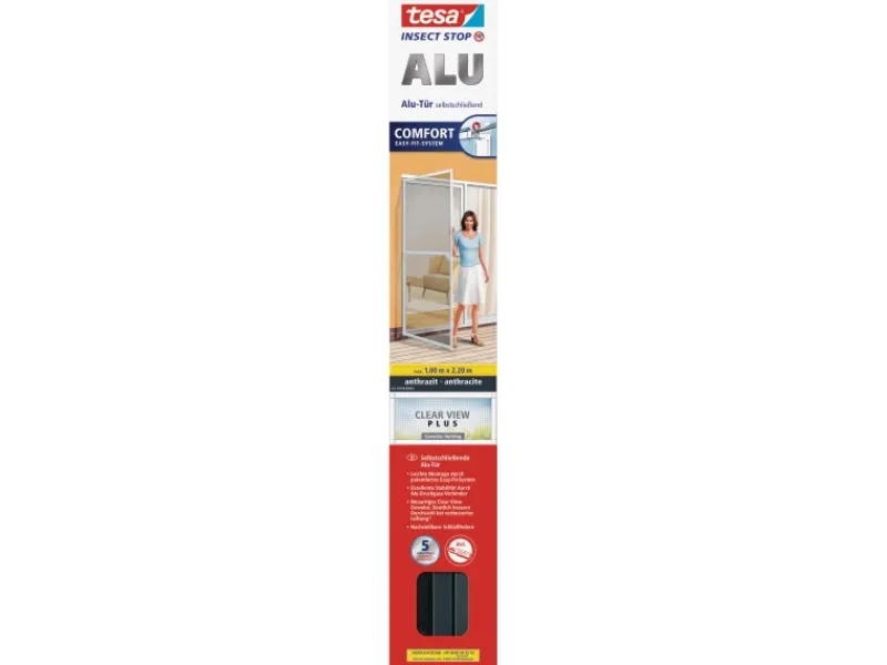 Damit der Rahmen exakt vor Ihre Balkon- oder Terrassentür passt, können Sie die Aluminiumprofile entsprechend kürzen. Das funktioniert zum Beispiel mit einer Eisensäge oder einer Gehrungssäge. Danach müssen Sie den Rahmen zusammenbauen, was dank der patentierten Easy-Fit-Eckverbinder und der integrierten Spannschrauben schnell und unkompliziert funktioniert. Im nächsten Schritt fixieren Sie das Fiberglasgewebe mittels Kederband am Rahmen. Beim Gewebe handelt es sich um ein neuartiges Clear-View-Gewebe, das eine gute Durchsicht ermöglicht und gleichzeitig für eine hohe Luftdurchlässigkeit sorgt. Sollte das Gewebe überstehen, können Sie es einfach mit einem Teppichmesser entfernen. Anschließend montieren Sie die Scharniere, den Griff und die Eckabdeckungen am Fliegengitter. Im letzten Schritt befestigen Sie das Fliegengitter mit Hilfe eines Bohrers und Schrauben am Blendrahmen Ihrer Tür.