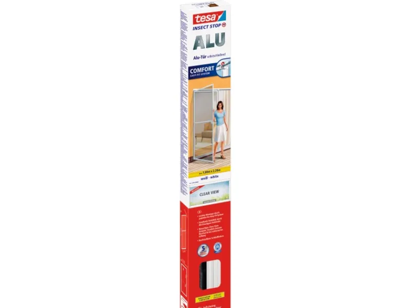 Tesa Fliegengitter Alu Rahmen Comfort Tür Weiß 220 cm x 100 cm