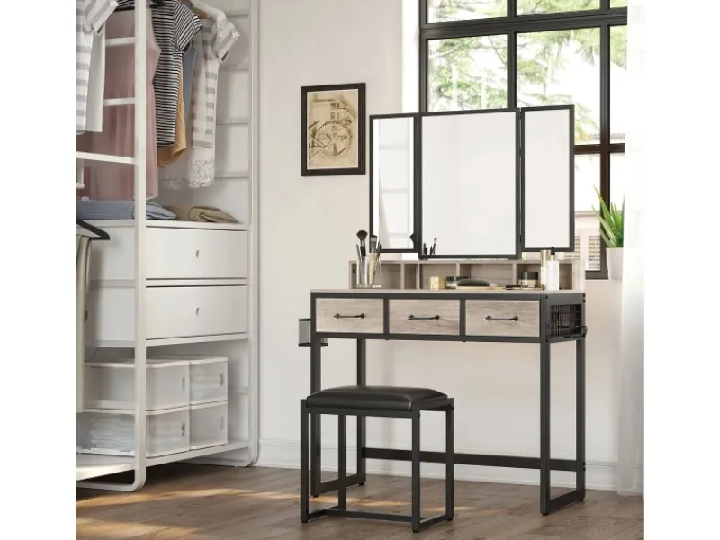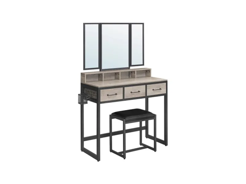 Klappspiegel und gepolsterter Hocker