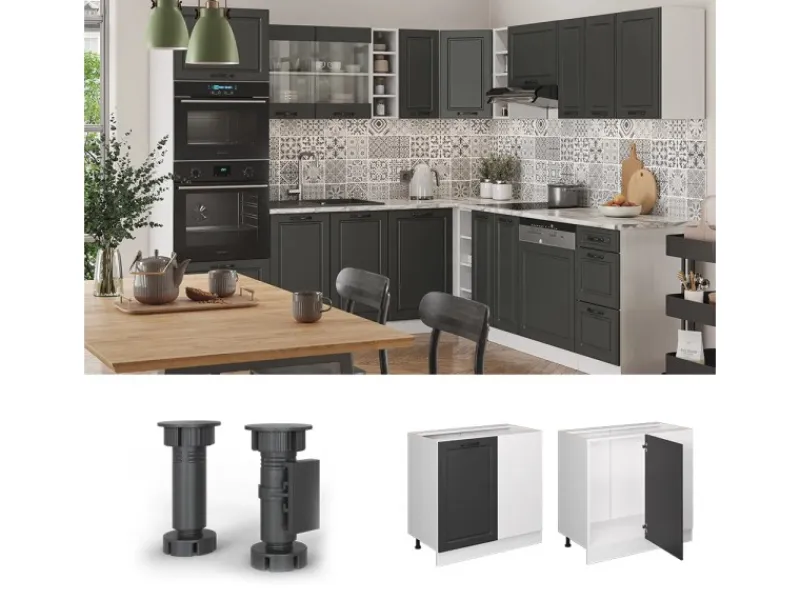 Lieferumfang: Küchenschrank als Bausatz, Montageanleitung, Montagematerial
