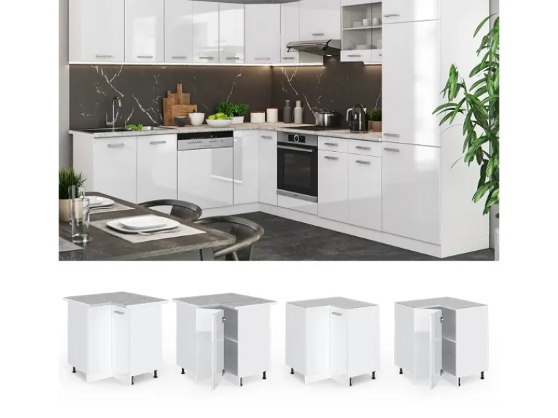 Das Eckregal für die Küche, mit Arbeitsplatte, hat Tiefe: 60 cm, Breite: 76 cm, Höhe: 82 cm