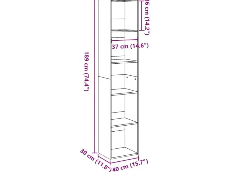 Abmessungen: 40 x 30 x 189 cm (B x T x H)