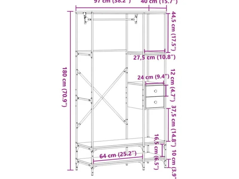 Abmessungen: 97 x 40 x 180 cm (L x B x H)
