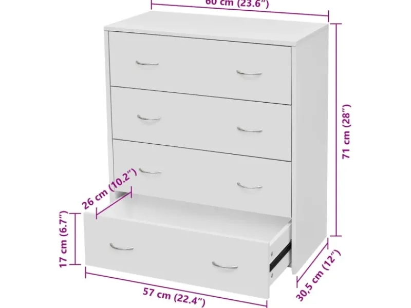 Schubladengröße: 56,8 x 26,3 x 16,7 cm (L x B x H)