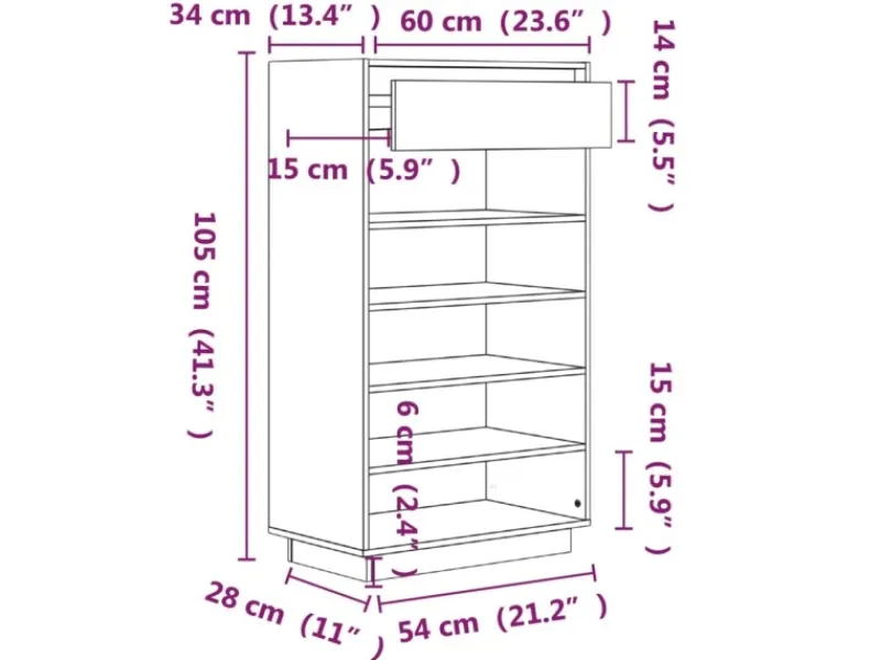 Abmessungen: 60 x 34 x 105 cm (B x T x H)