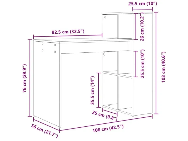 Gesamtabmessungen: 108 x 55 x 103,5 cm (L x B x H)