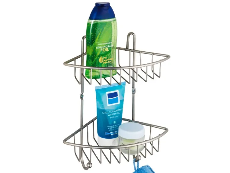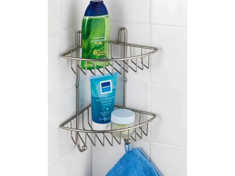 Die elegante Ablage bietet auf 2 Etagen viel Platz und ist die ideale Stauraumnutzung für jede Raum- oder Duschecke.