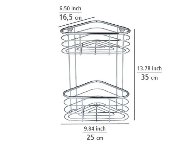 Gefertigt ist das rostfreie Bad-Regal aus verchromtem Edelstahl. Das Design des Duschregals in glänzendem Silber ermöglicht eine kreative Kombination mit unterschiedlichen Einrichtungsstilen. Durch die offene Gestaltung in Drahtoptik kann Duschwasser direkt und sauber abfließen. Insgesamt misst das Wandregal (B x H x T): 25 x 35 x 16,5 cm und bereichert das Badezimmer oder die Dusche um einen strahlenden Hingucker, der sich platzsparend einfügt. Schrauben und Dübel für die Wandmontage sind im Lieferumfang enthalten.